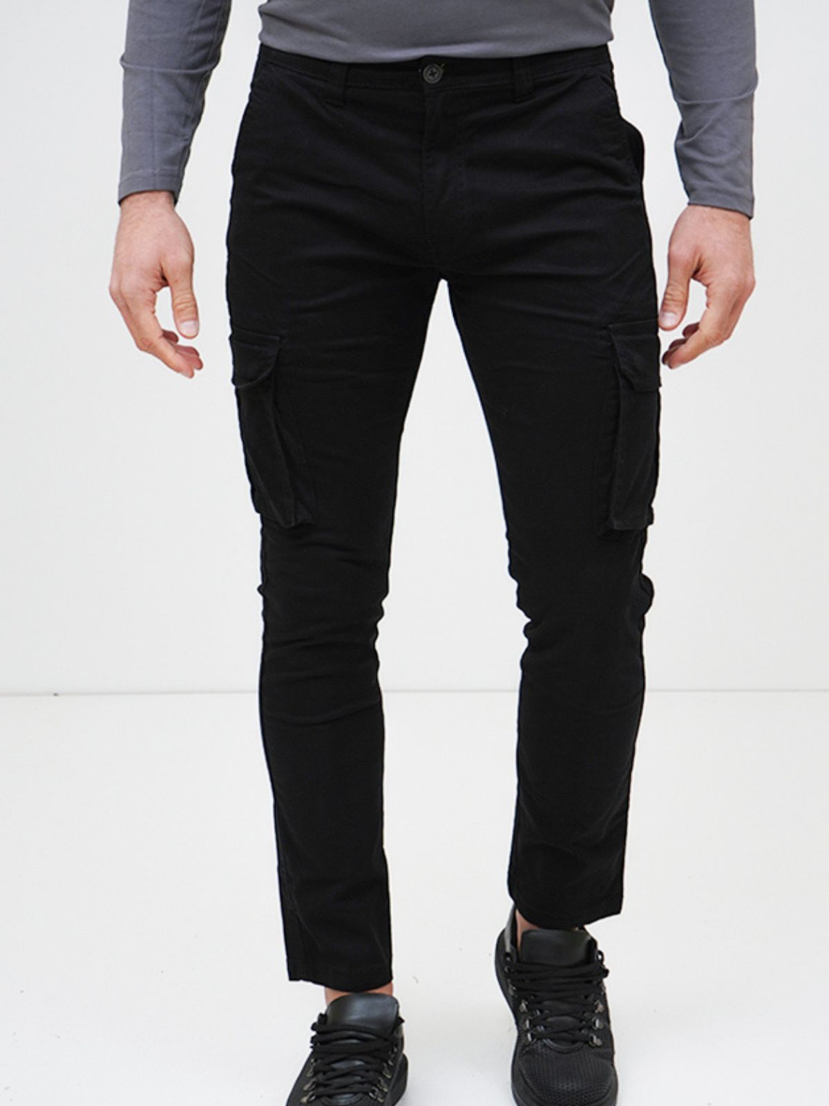 Ανδρικό Cargo Kill Black σε μαύρο χρώμα. Διαθέτει εξωτερικές τσέπες καθώς και δύο πλαϊνές αρκετά ευρύχωρες. Τέλος, κλείνει με κουμπιά κι έχει στενή εφαρμογή. Συνδύασε το με μπλούζα και δημιούργησε ένα μοντέρνο casual look για τις εμφανίσεις σου.