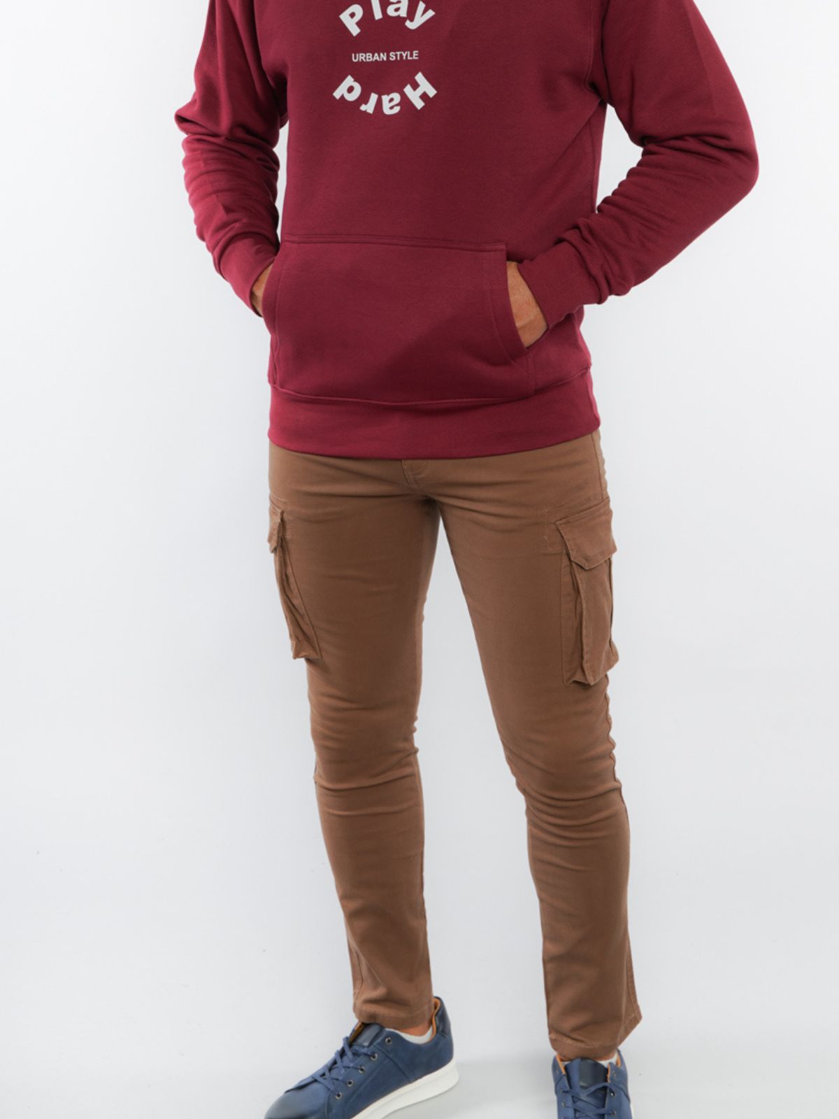 Ανδρικό Cargo παντελόνι ίσιο που διαθέτει εξωτερικές τσέπες καθώς και δύο πλαϊνές αρκετά ευρύχωρες. Τέλος, κλείνει με κουμπιά κι έχει στενή εφαρμογή. Συνδύασε το με μπλούζα και δημιούργησε ένα μοντέρνο casual look για τις εμφανίσεις σου.