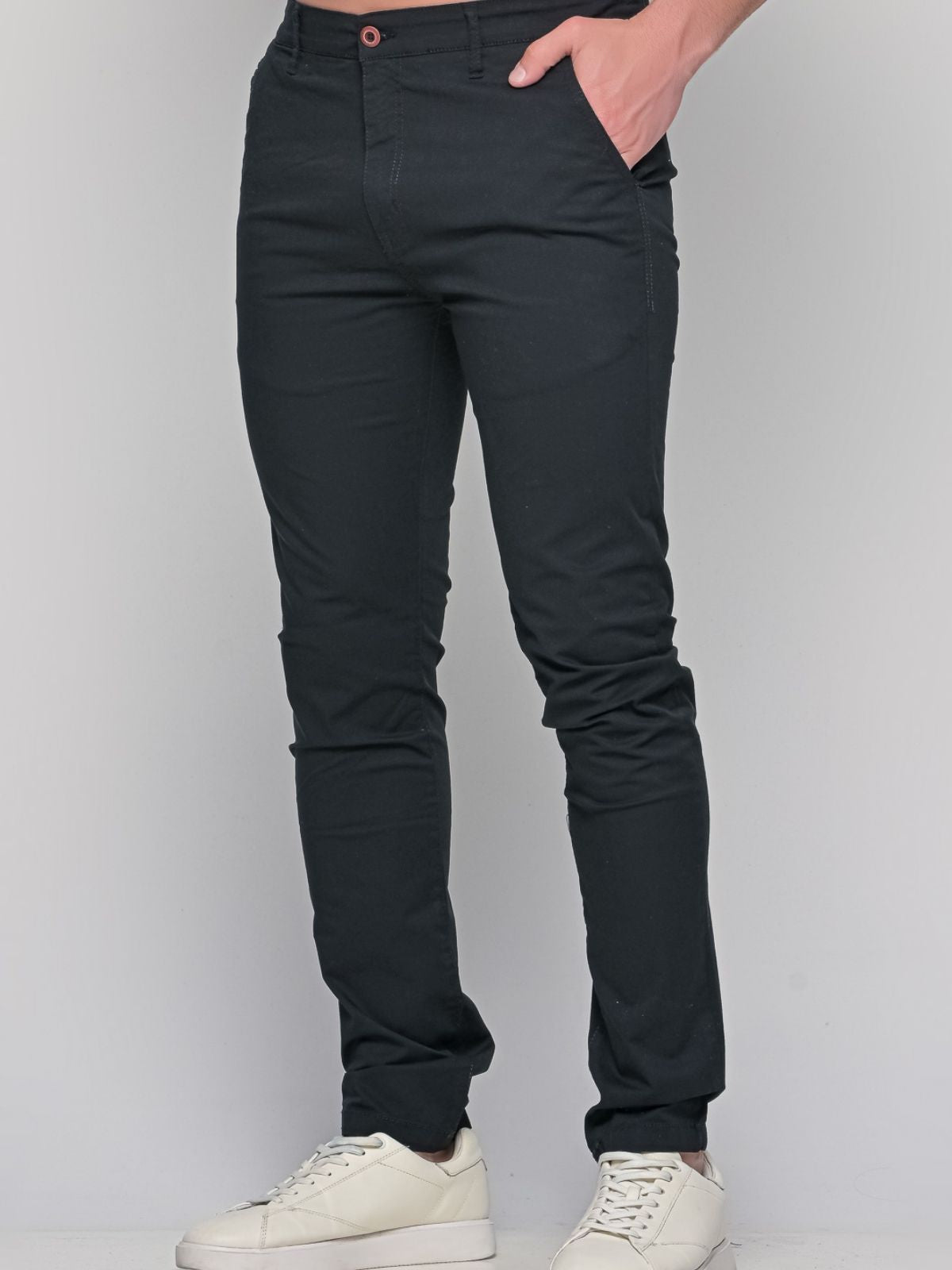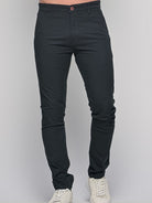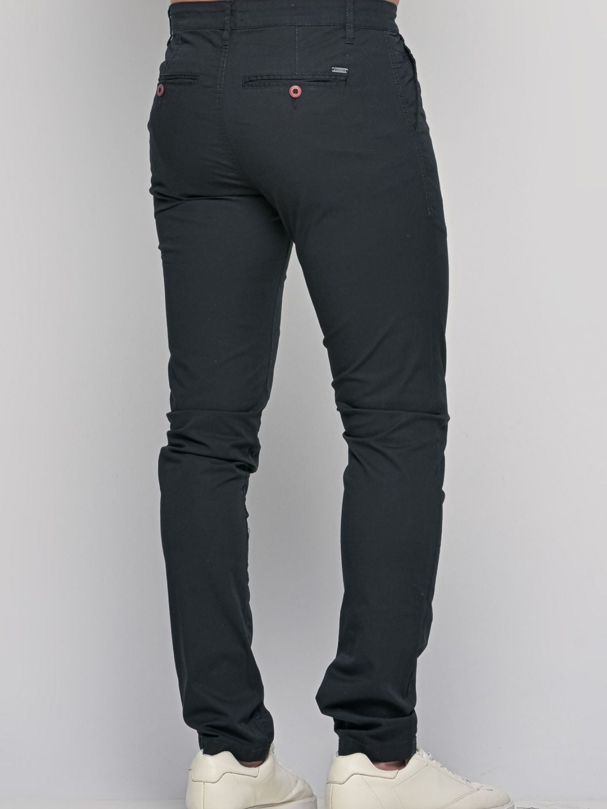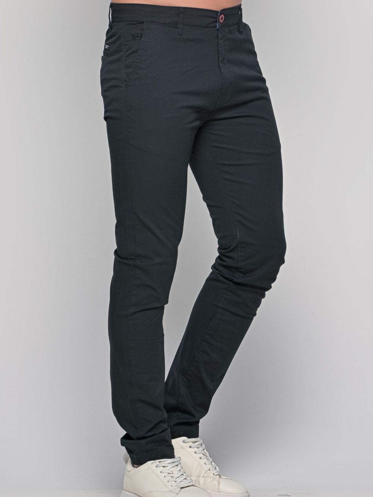 Υφασμάτινο ανδρικό παντελόνι με εξωτερικές τσέπες κουμπί και φερμουάρ.Έχει στενή εφαρμογή.