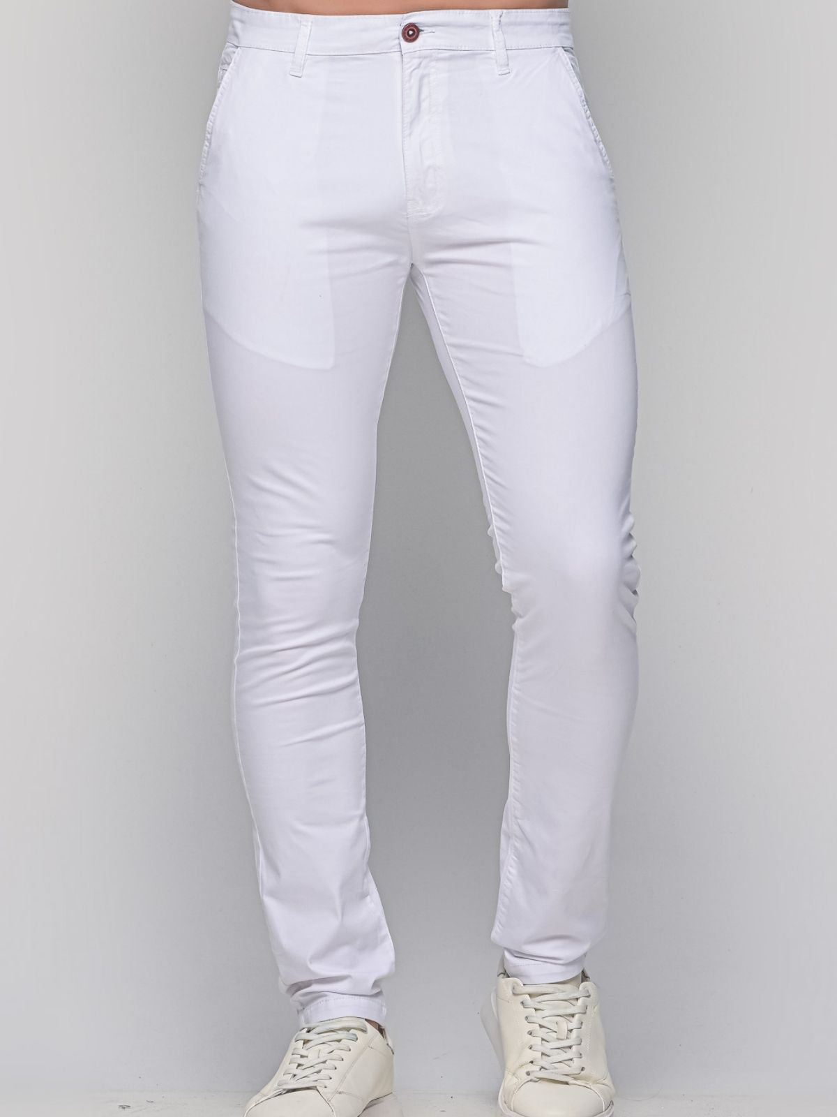 Υφασμάτινο ανδρικό παντελόνι με εξωτερικές τσέπες κουμπί και φερμουάρ.Έχει στενή εφαρμογή.