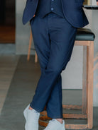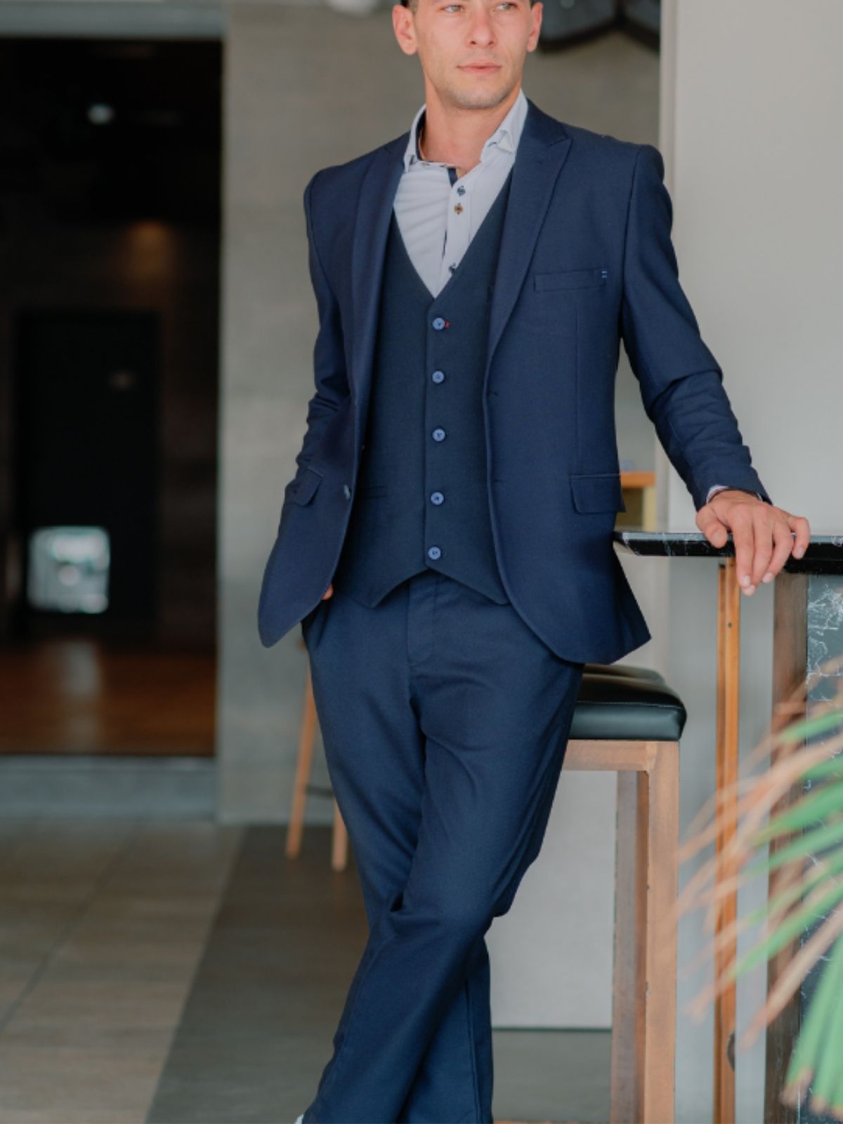 Υφασμάτινο ανδρικό παντελόνι με εξωτερικές τσέπες κουμπί και φερμουάρ.Έχει στενή εφαρμογή.