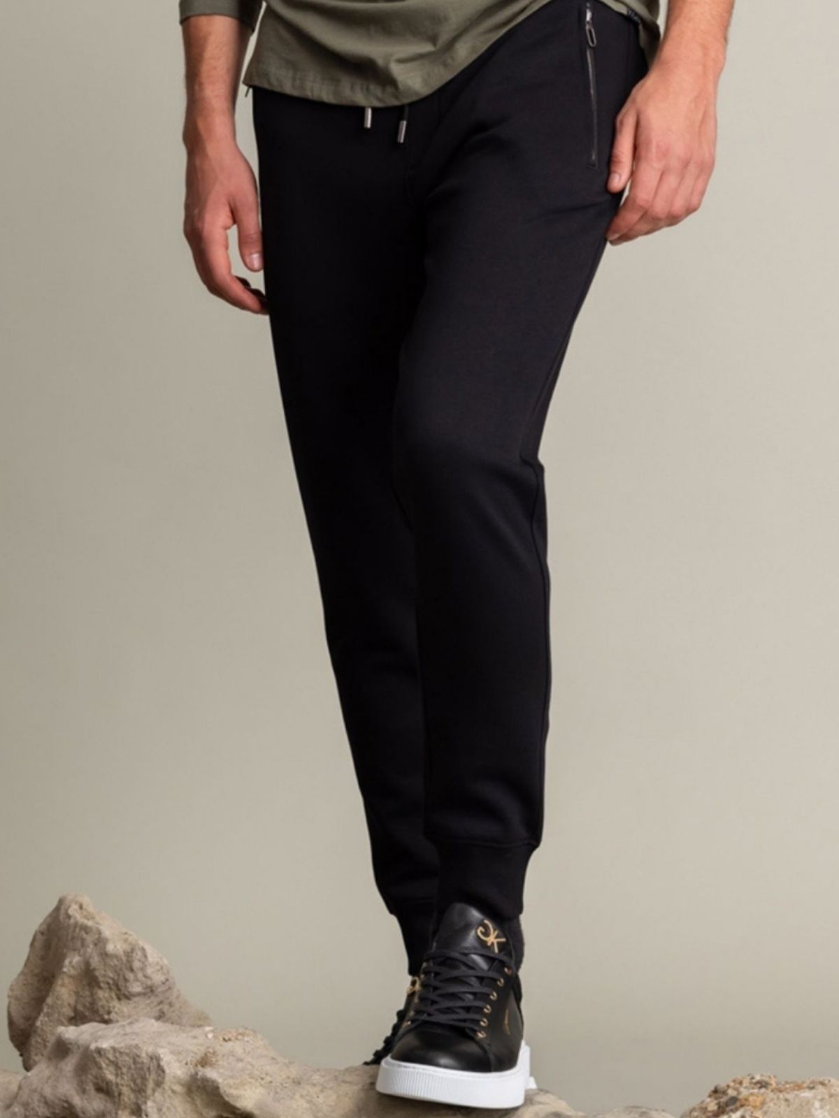 Παντελόνι φούτερ με τσέπες που κλείνουν με φερμουάρ, λάστιχο στη μέση και τα πατζάκια και στενή εφαρμογή.