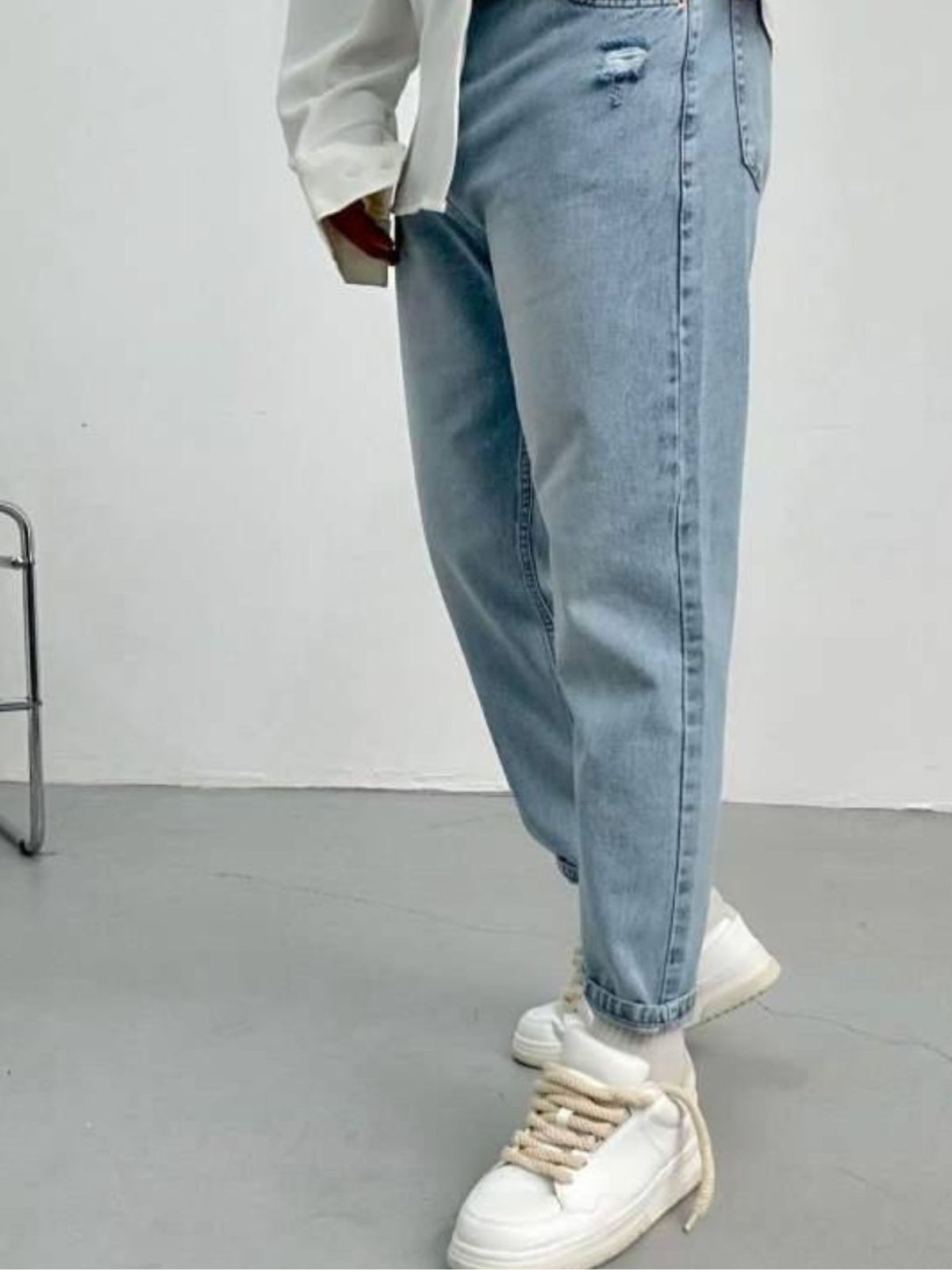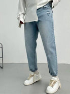 Παντελόνι jean με κουμπιά, τεχνητές φθορές και τσέπες.Είναι ελαστικό σε boyfriend γραμμή και και έχει κανονική εφαρμογή.