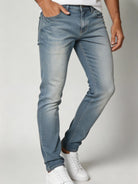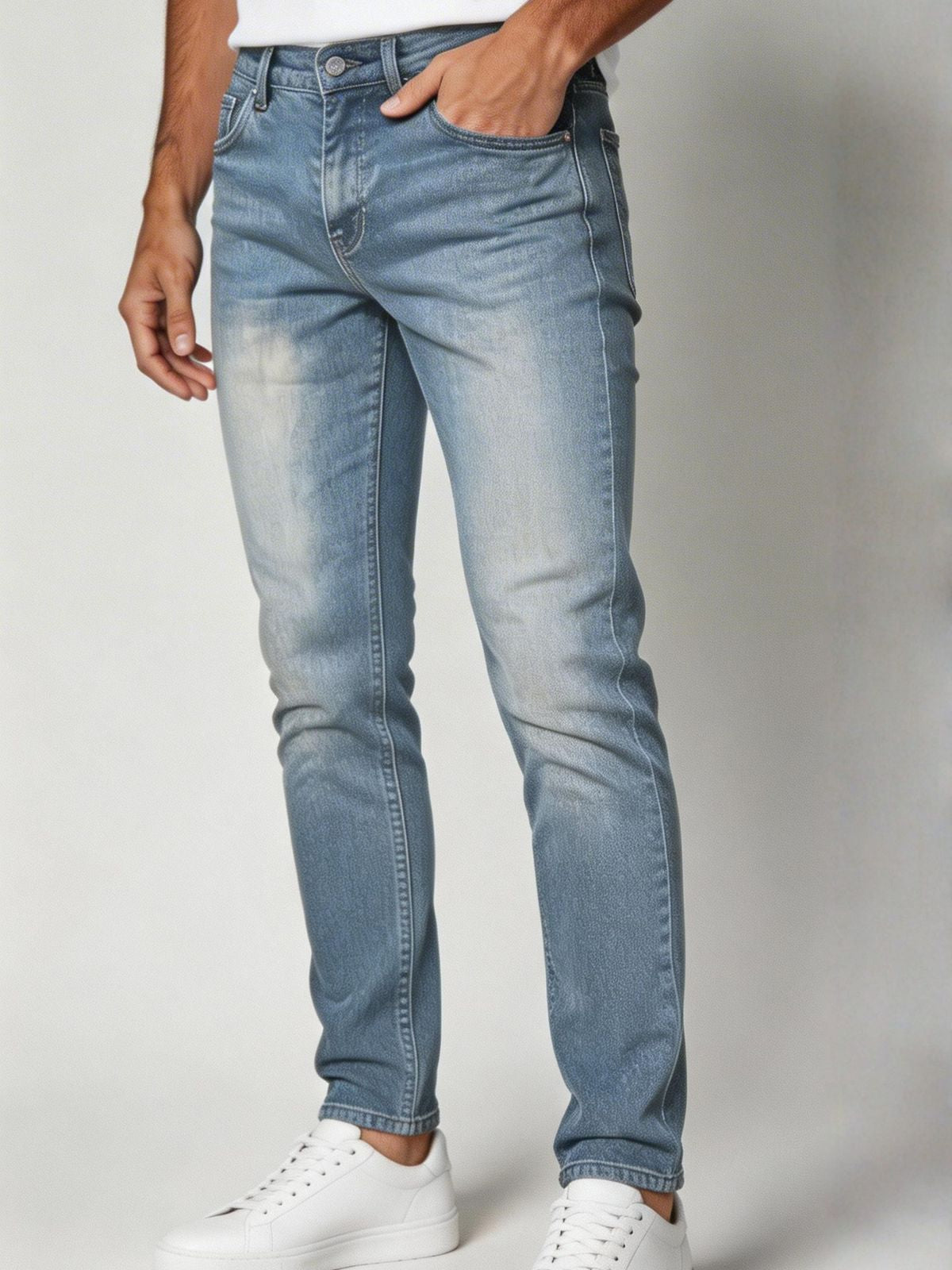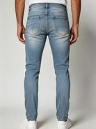 Παντελόνι jean με κουμπί και φερμουάρ, ξεβάμματα, ελαστικό και με στενή  εφαρμογή.