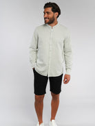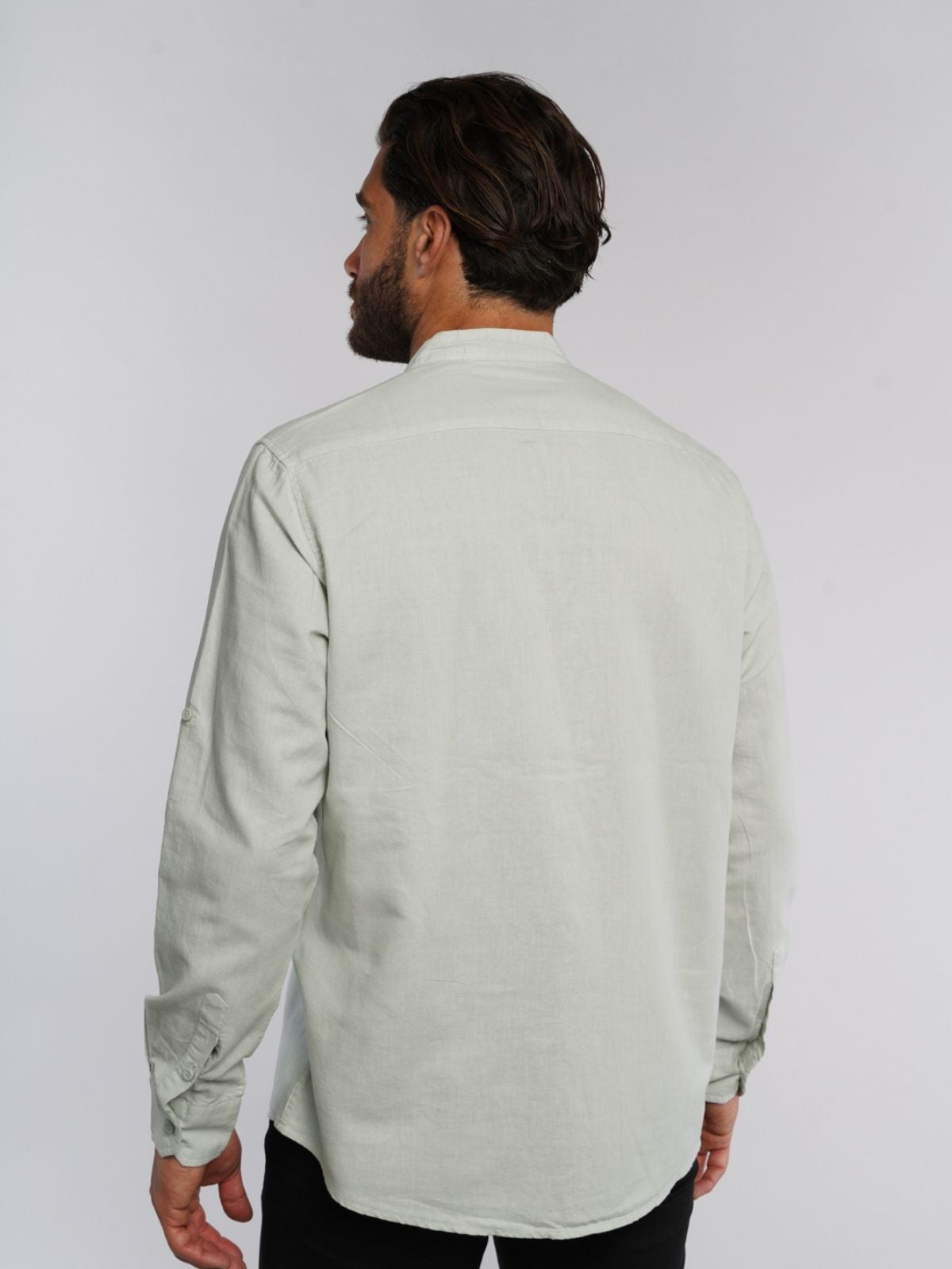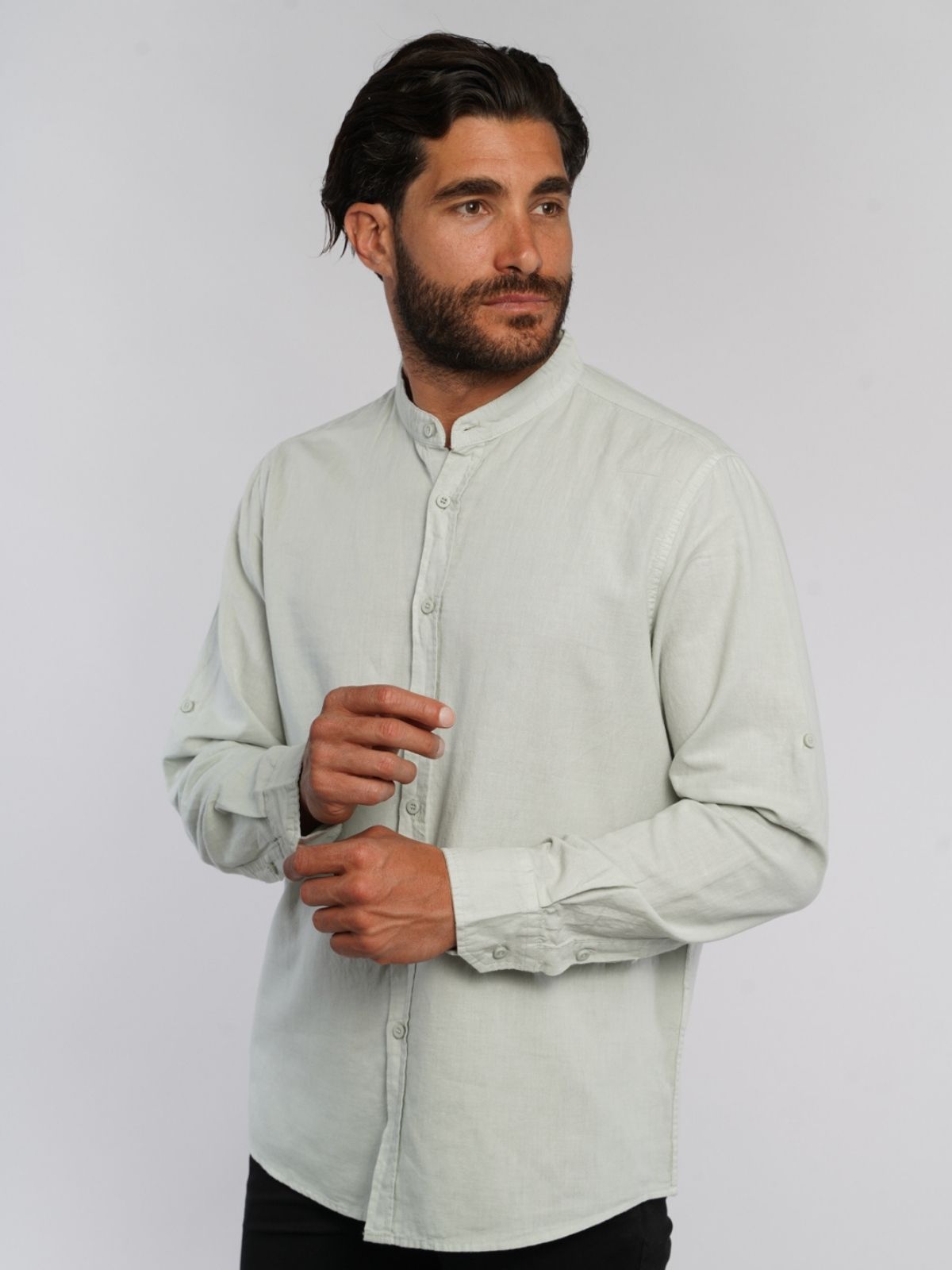 Πουκάμισο λινό μακρυμάνικο με κουμπιά, mao γιακά και κανονική εφαρμογή.