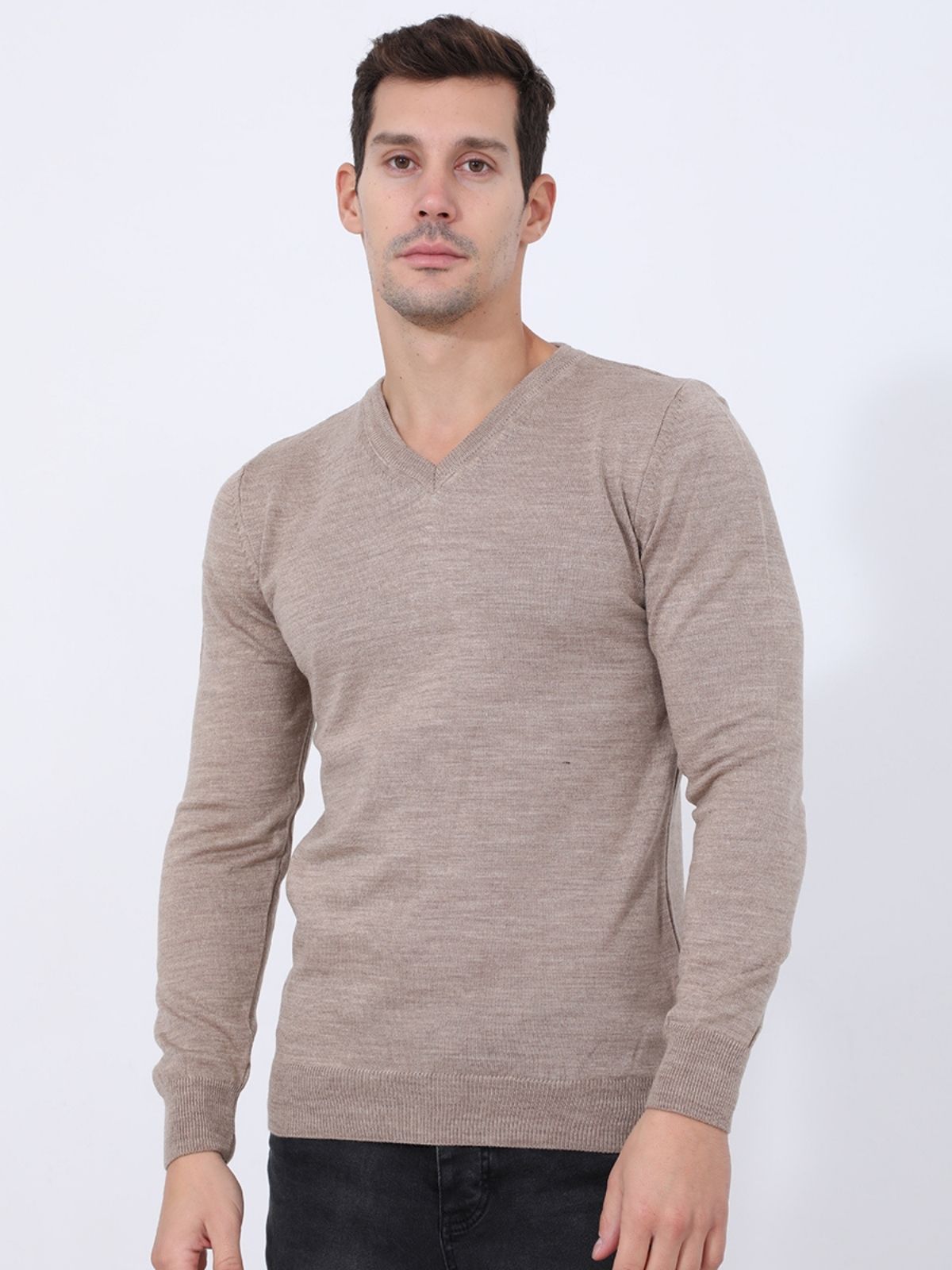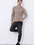Μακρυμάνικη ψιλή πλεκτή μπλούζα με V λαιμόκοψη σε στενή γραμμή.