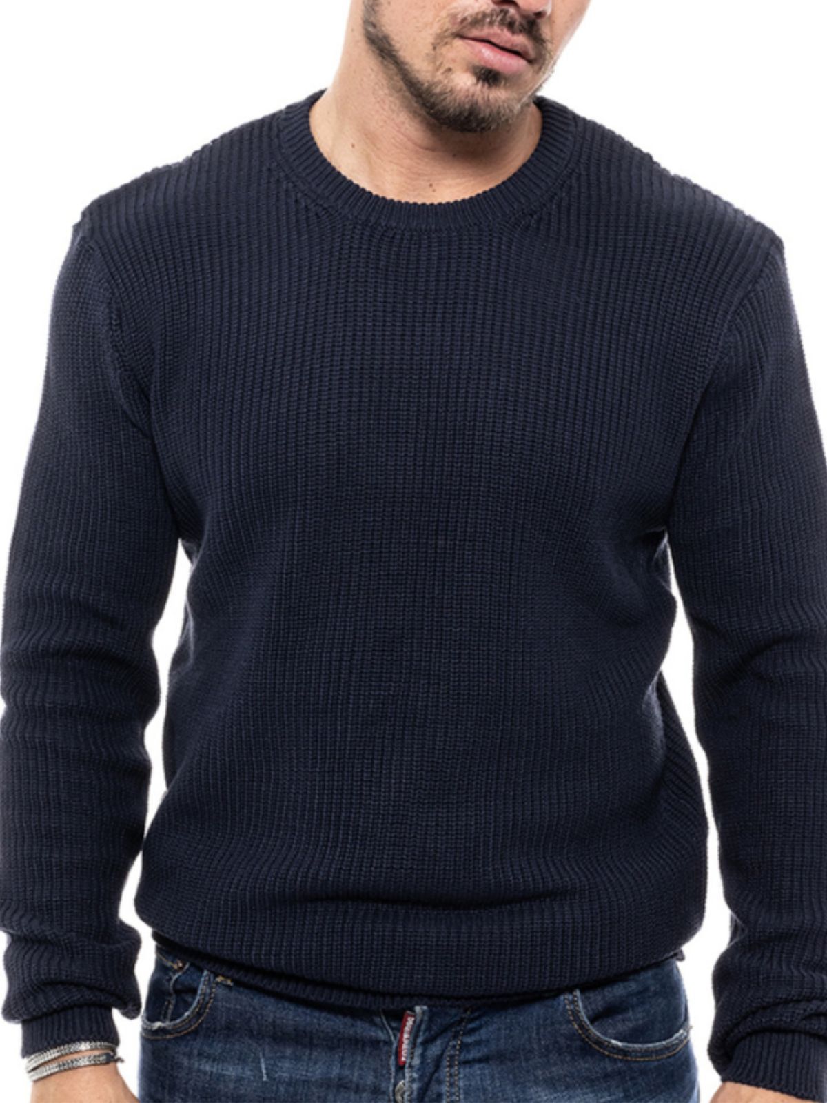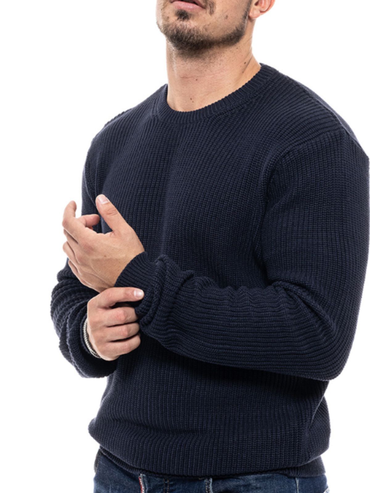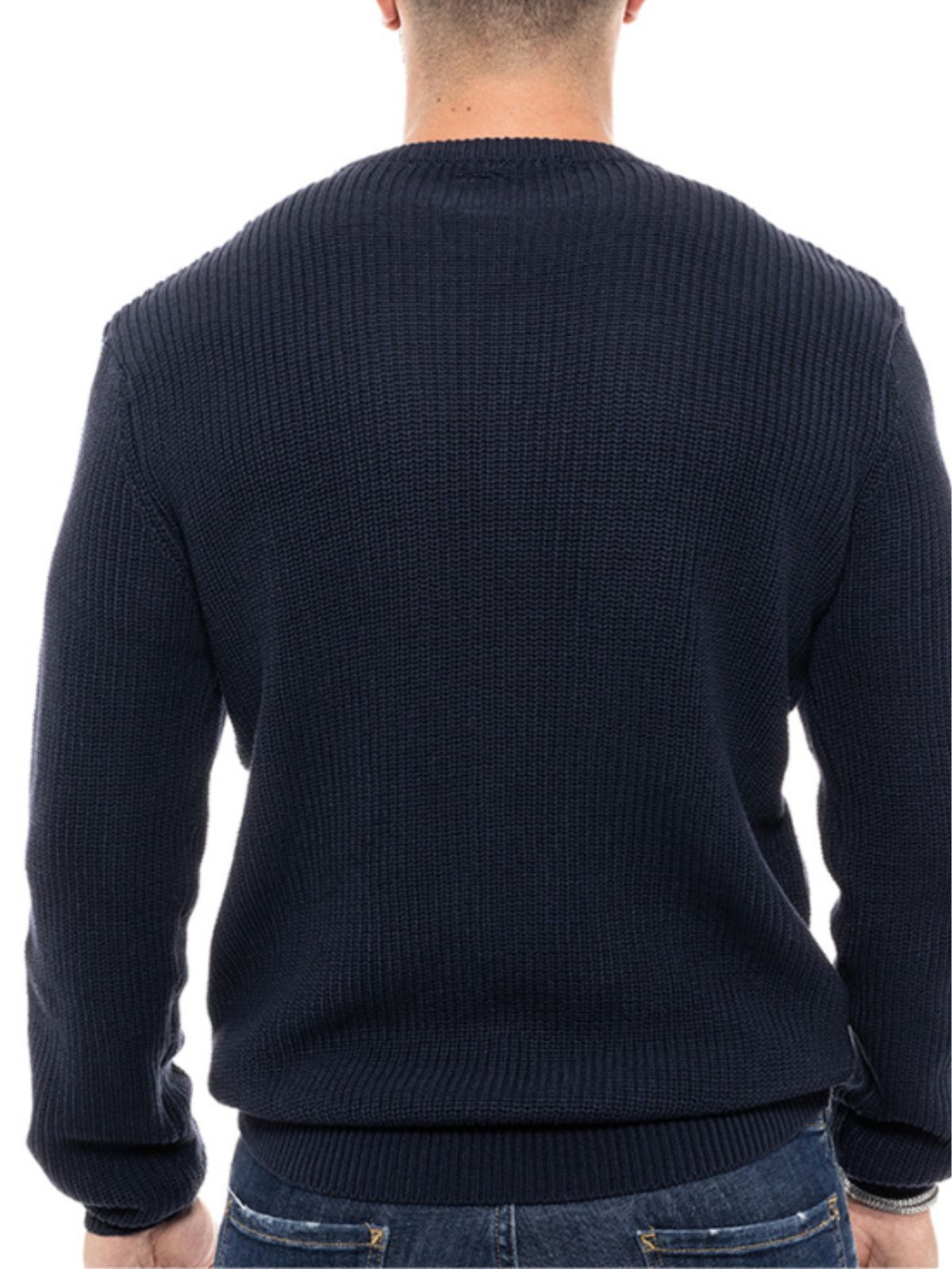 Ανδρική πλεκτή μπλούζα με στρογγυλή λαιμόκοψη και στενή εφαρμογή.