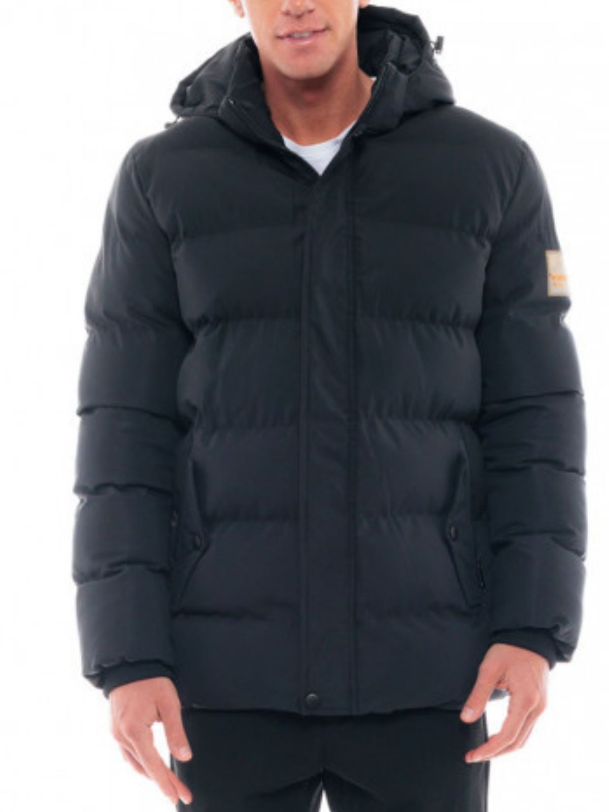 Aνδρικό μπουφάν με ενσωματωμένη κουκούλα, εσωτερική και εξωτερικές τσέπες, κλείσιμο με φερμουάρ και πατιλέτα με τρουκ, επένδυση πολυεστέρα, απλικέ σήμα και στενή εφαρμογή.