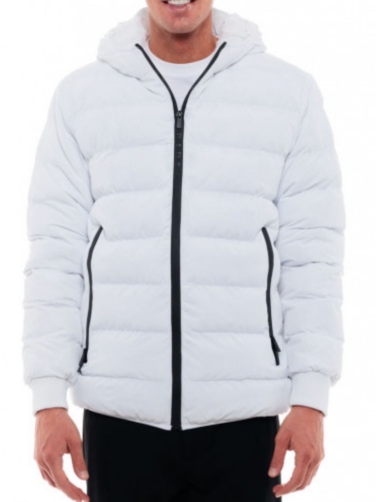Κοντό μπουφάν με ενσωματωμένη κουκούλα ,λάστιχο στα μανίκια ,εξωτερικές τσέπες και στενή εφαρμογή.