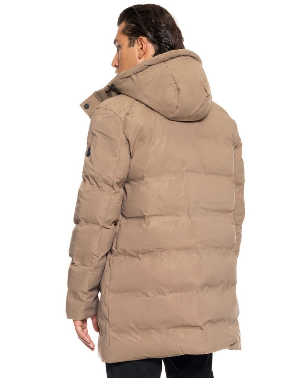 Aνδρικό demi μπουφάν με αποσπώμενη κουκούλα, εσωτερική και εξωτερικές τσέπες, κλείσιμο με φερμουάρ και πατιλέτα με τρουκ και στενή εφαρμογή.