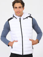 Μπουφάν αμάνικο με αποσπώμενη κουκούλα, εσωτερικές και εξωτερικές τσέπες, φερμουάρ και στενή εφαρμογή.