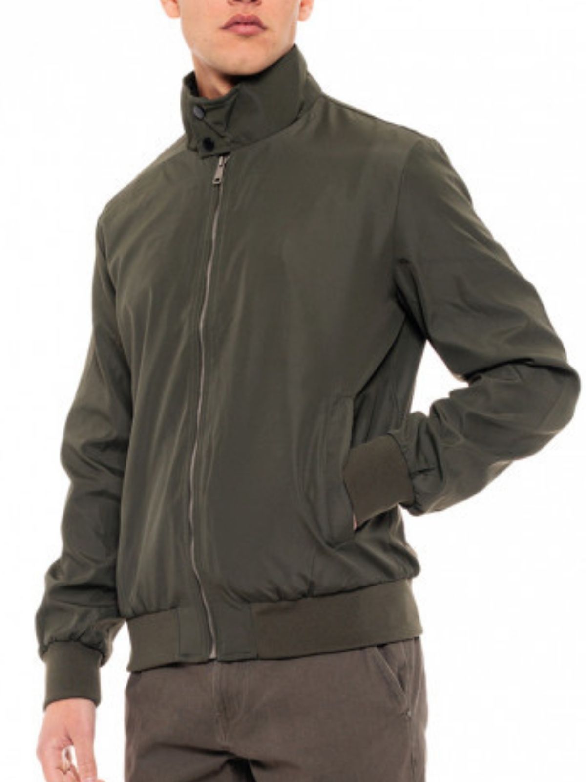 Ψιλό μπουφάν με εξωτερικές κι εσωτερική τσέπη, φερμουάρ, λάστιχο στα μανίκια και το τελείωμα του και κανονική εφαρμογή.