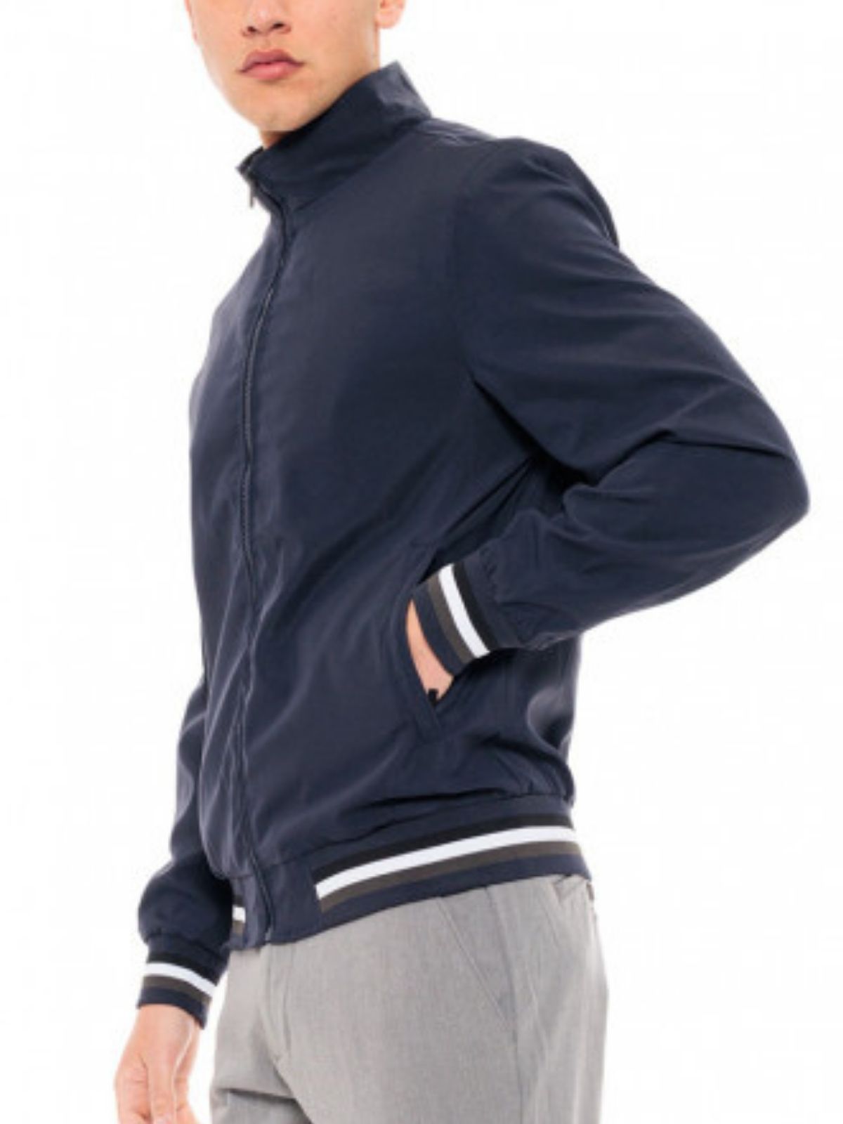 Ψιλό μπουφάν με εξωτερικές κι εσωτερική τσέπη, φερμουάρ, λάστιχο στα μανίκια και το τελείωμα του και κανονική εφαρμογή.