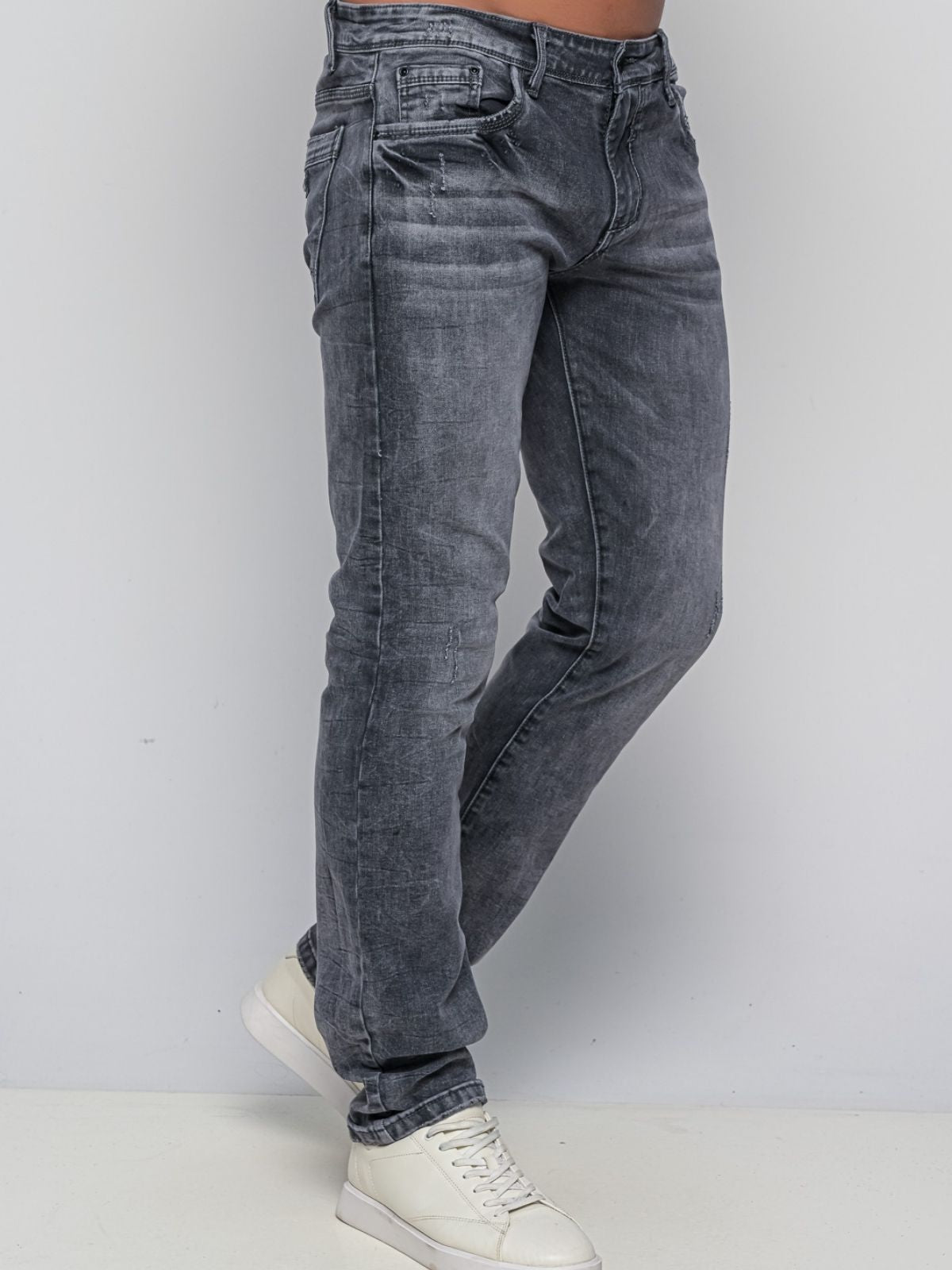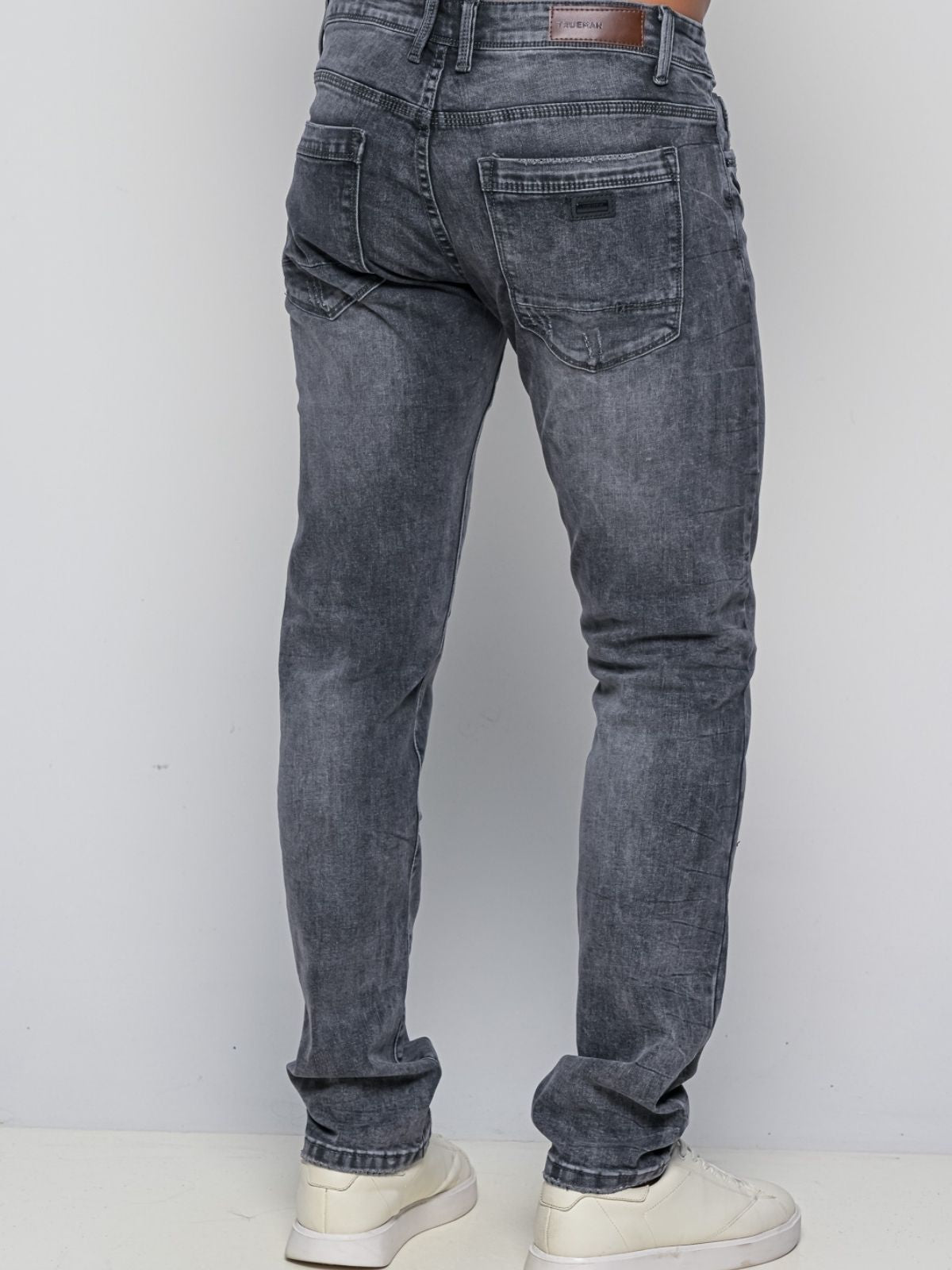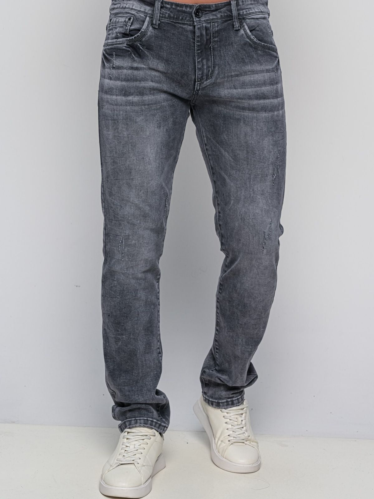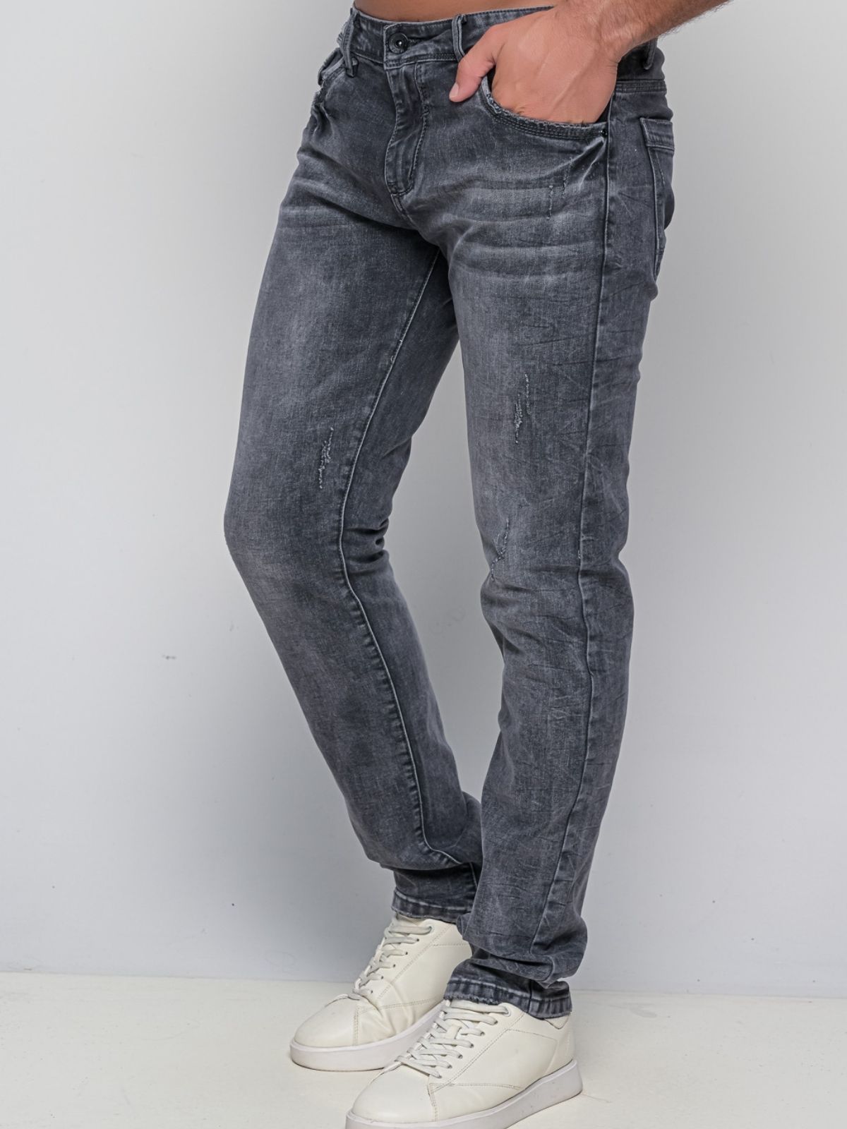 Παντελόνι jean ελαστικό με κουμπί και φερμουάρ, ξεβάμματα, τεχνητές φθορές, τσέπες και στενή εφαρμογή.