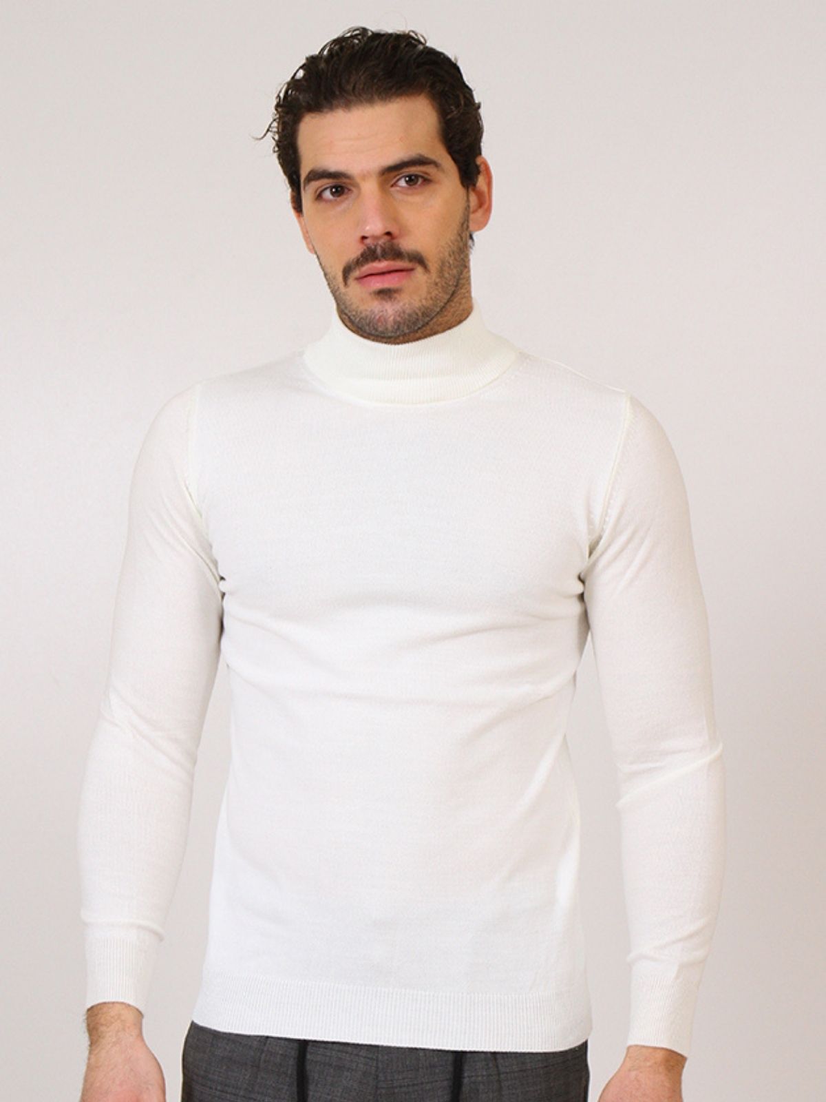 Μπλούζα ψιλή πλεκτή με λουπέτο λαιμόκοψη, λάστιχο στα μανίκια και το τελείωμα της και στενή εφαρμογή.