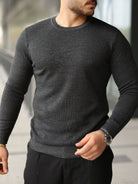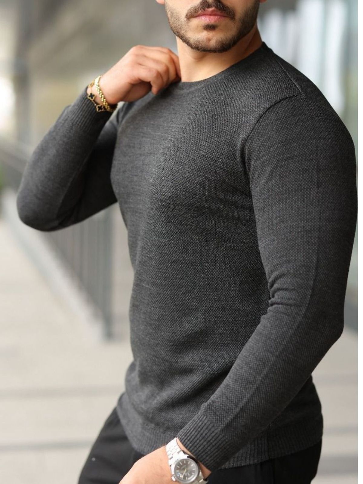 Μακρυμάνικη πλεκτή ψιλή μπλούζα με λαιμόκοψη σε στενή γραμμή.