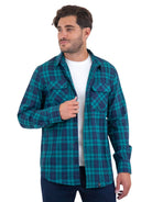 Πουκάμισο καρό, με κουμπιά, τσέπες και στενή εφαρμογή.