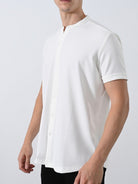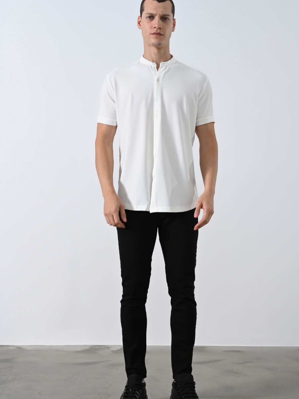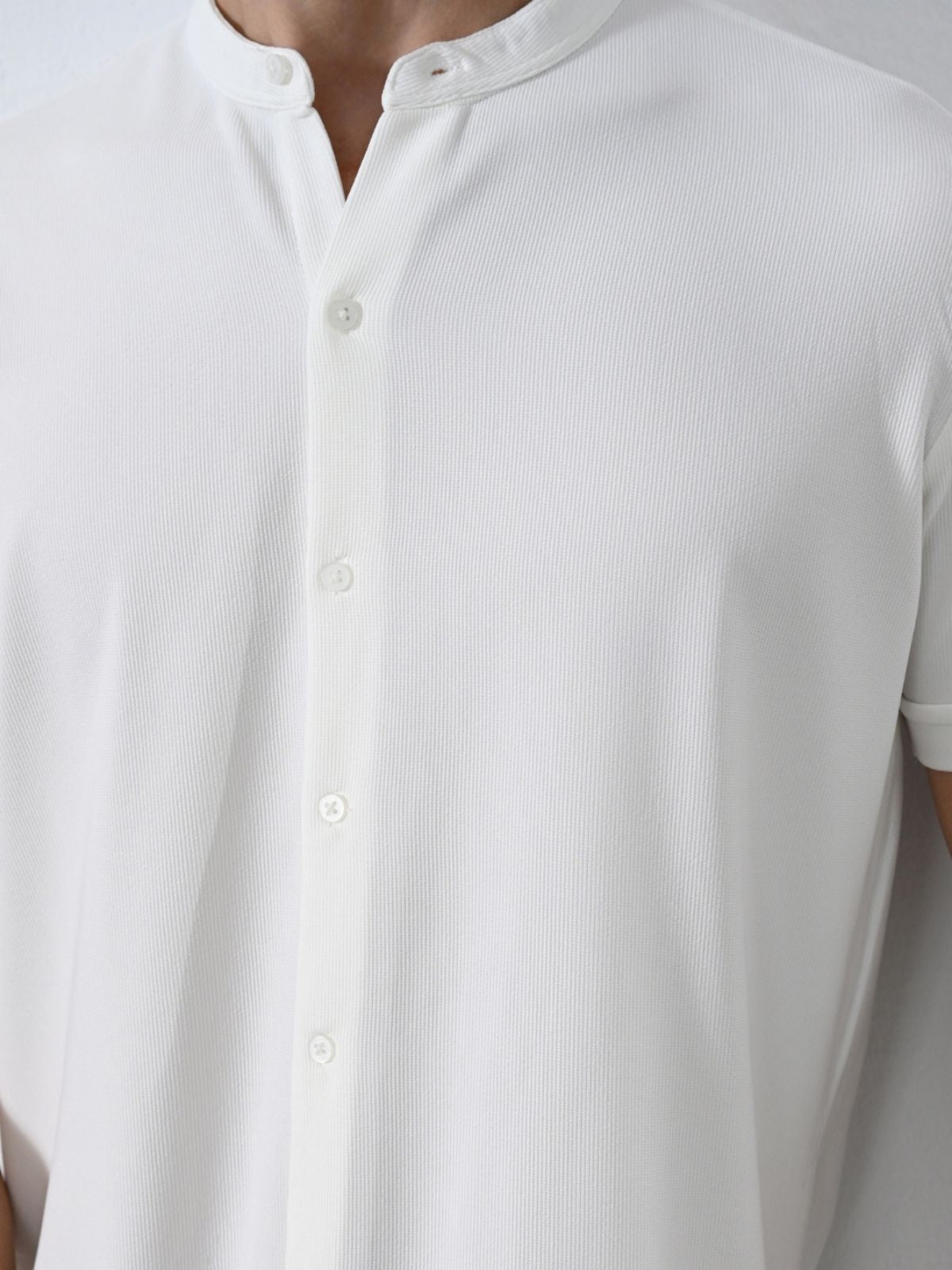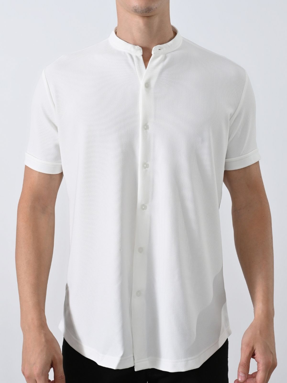 Κοντομάνικο πουκάμισο με mao γιακά και στενή εφαρμογή.