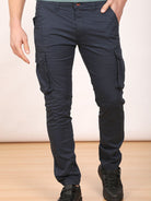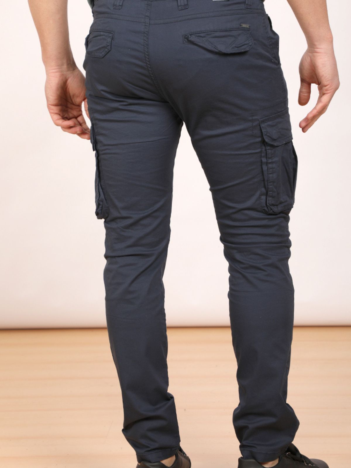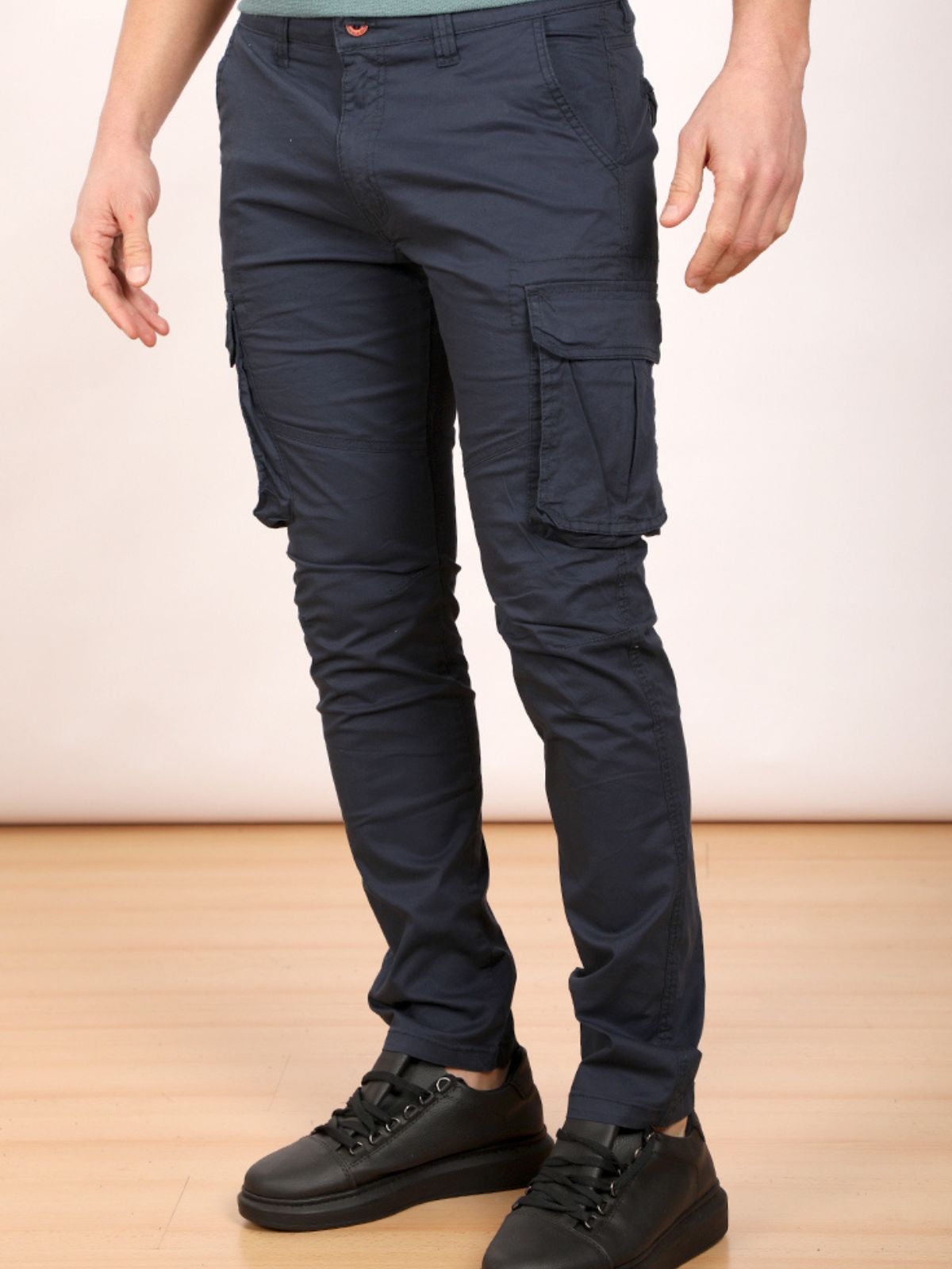 Cargo παντελόνι ίσιο κάτω, με τσέπες, κουμπί και φερμουάρ και στενή εφαρμογή.