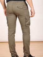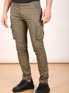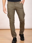Cargo παντελόνι ίσιο κάτω, με τσέπες, κουμπί και φερμουάρ και στενή εφαρμογή.