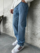 Παντελόνι jean με ξεβάμματα, κουμπιά και τσέπες.Είναι ελαστικό σε baggy γραμμή και και έχει κανονική εφαρμογή.